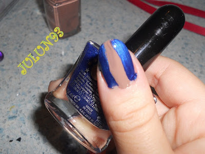 Secondo step : senza aspettare che il marrone si asciughi tracciare nei lati della linea marrone due righe blu.